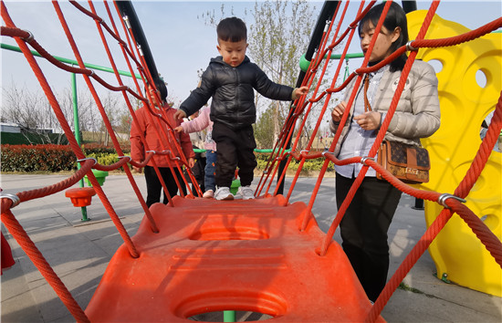 在周口公園內(nèi),園內(nèi)春意盎然,一株株垂柳隨風搖擺,各種花開正盛,市民循著春天的腳步,品味草長鶯飛的春色美景。游樂設(shè)施區(qū)內(nèi)孩子們盡情地玩耍,臉上洋溢著開心地笑容。