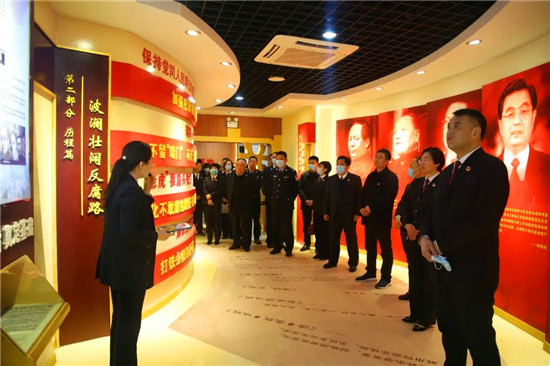 干警們?cè)谥v解員的帶領(lǐng)下,有序參觀了序廳、航向篇、歷程篇、楷模篇、警示篇、懺悔篇等八部分展廳。通過(guò)聽講解、觀圖片、看實(shí)物等方式,干警們?cè)敿?xì)了解了黨的反腐歷程和違法違紀(jì)典型案例。一個(gè)個(gè)鮮活的案例、一張張觸目驚心的圖片、一句句發(fā)自內(nèi)心的懺悔,讓全體人員接受了一次深刻的警示教育,增強(qiáng)了廉潔意識(shí),提高了拒腐防變的自覺性。