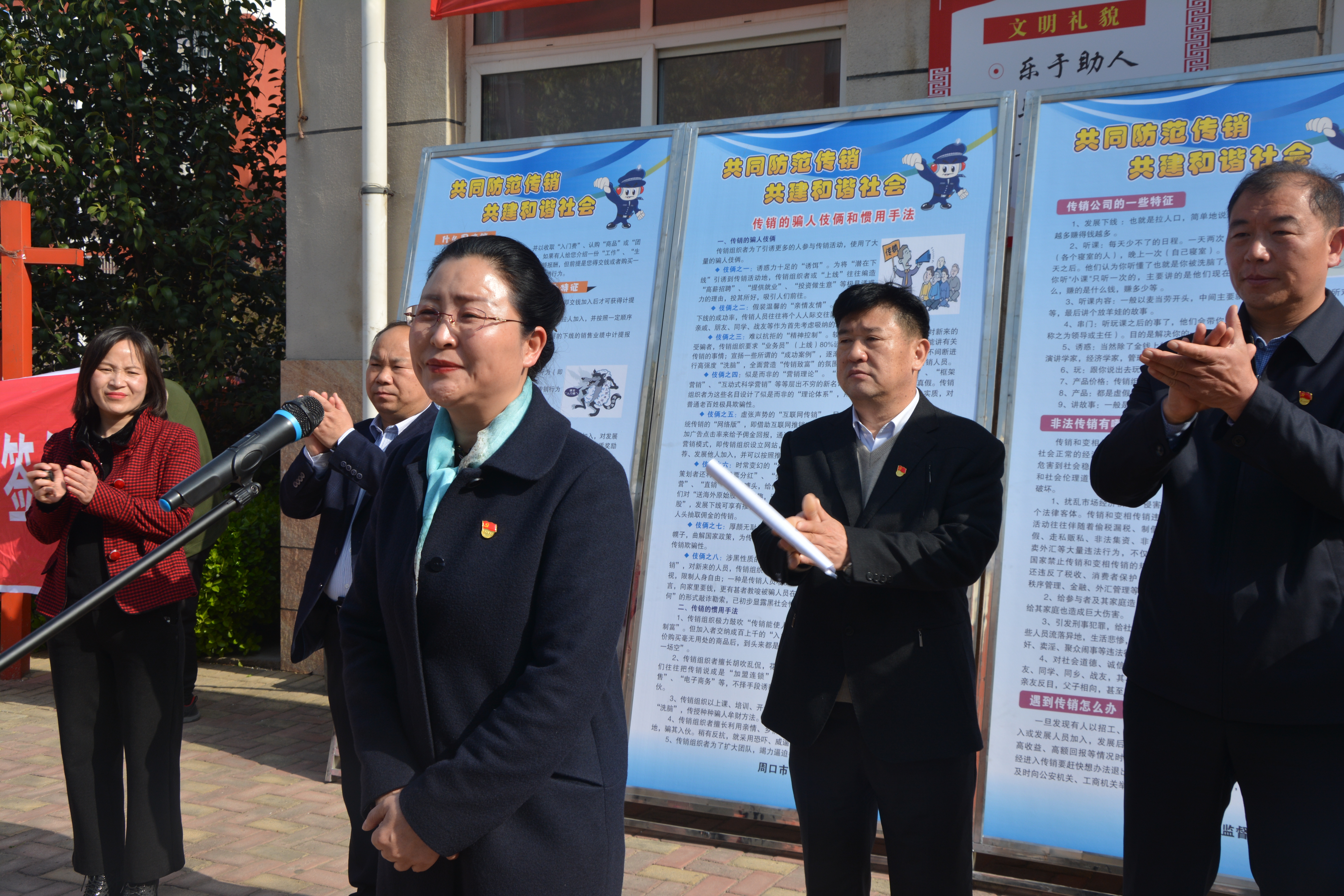 本報(bào)訊 (記者 宋風(fēng) 通訊員 王燕 趙磊 文/圖) 3月25日上午,周口市市場(chǎng)監(jiān)管局港區(qū)分局在轄區(qū)未來家園小區(qū)舉行周口港區(qū)創(chuàng)建無傳銷社區(qū)村活動(dòng)啟動(dòng)儀式,宣傳《禁止傳銷條例》,普及打擊傳銷知識(shí),開展宣傳維權(quán)咨詢服務(wù),營造全社會(huì)共同打擊傳銷氛圍,為平安港區(qū)建設(shè)做出新貢獻(xiàn)。