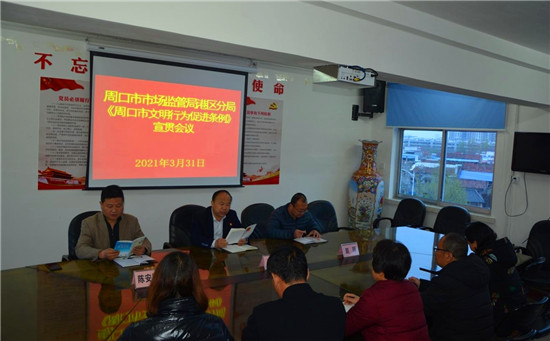 3月31日,周口市市場(chǎng)監(jiān)督管理局港區(qū)分局召開《周口市文明行為促進(jìn)條例》宣貫會(huì)議。局長崔健就如何學(xué)習(xí)、遵守、貫徹、宣傳好《周口市文明行為促進(jìn)條例》向全局同志提出具體要求。