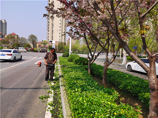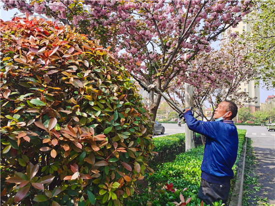 春回大地,萬物更新,當前正是進行綠植養(yǎng)護的好時節(jié)。我市的園林工人和小區(qū)物業(yè)人員對城區(qū)各街道及社區(qū)的綠植、花木進行養(yǎng)護、修剪,增加了植物的生長活力,這樣既有利于植物健康生長,又能美化植物造型,提升城市綠化檔次。②7