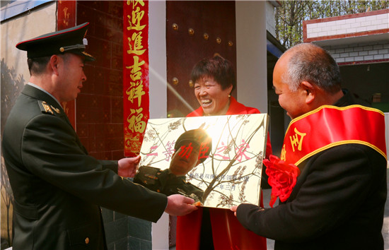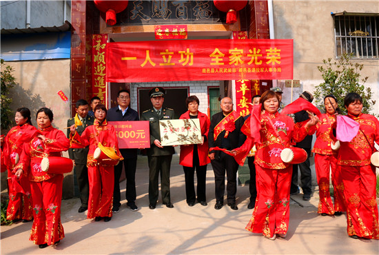 李峰說:“一張立功喜報(bào),不僅是軍人榮譽(yù)的象征、成長進(jìn)步的見證,也承載著軍人家屬的期盼與慰藉。功臣是實(shí)現(xiàn)強(qiáng)軍興軍目標(biāo)的尖兵,他們在部隊(duì)建功立業(yè),我們力所能及服務(wù)保障好他們的家人,積極在全社會(huì)營造起‘功臣受愛戴、軍人受尊崇、軍屬受尊敬’的氛圍。”為此,鹿邑縣人武部積極構(gòu)建軍人軍屬榮譽(yù)體系,每逢重大節(jié)日,都要協(xié)調(diào)地方黨委、政府開展為現(xiàn)役軍人和軍屬送喜報(bào),掛功臣匾、光榮牌等活動(dòng),通過活動(dòng)激勵(lì)等形式,讓軍人軍屬享有更多的“專屬榮光”,努力營造“一人參軍,全家光榮;一人立功,全村光榮”的濃厚氛圍,更加堅(jiān)定了軍屬支持子女獻(xiàn)身國防的決心,進(jìn)一步激發(fā)了鹿邑籍官兵獻(xiàn)身軍營、報(bào)效祖國的積極性。②9