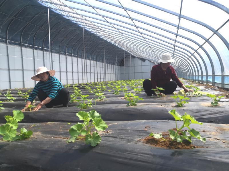 “當(dāng)下,正逢‘吊秧’香瓜生長旺盛的時候,這幾天,我和馮大姐一直在大棚里忙活,每天有事兒干、有人陪說話,還可以掙到60元的工錢,就在家門口,多好?。 ?月8日,在半截樓村新建的溫室大棚內(nèi),65歲的李愛蓮一邊忙著為瓜秧打岔,一邊對記者說。