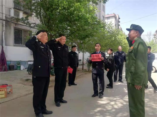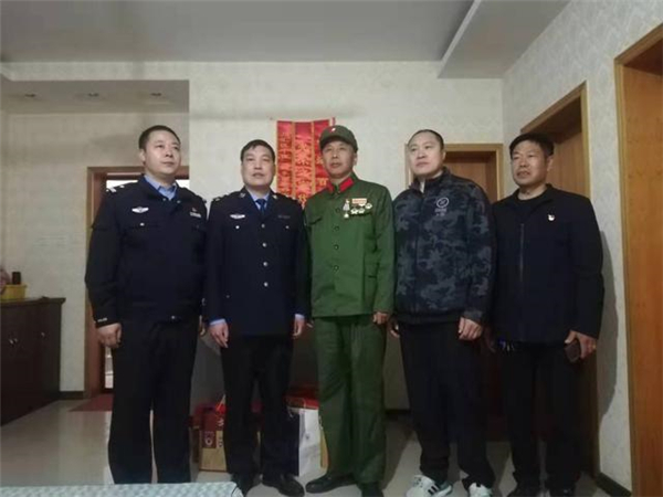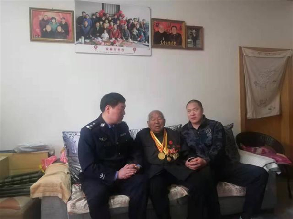 一大早,該所黨員民警身著戎裝,排著整齊的隊(duì)伍,分別前往荷花路派出所轄區(qū)的閆莊社區(qū)、荷花社區(qū)、前王營等社區(qū),探望慰問年逾花甲的抗戰(zhàn)老英雄,聆聽他們?cè)诳箵羟致缘膽?zhàn)斗歲月里浴血奮戰(zhàn)、不屈不撓的感人故事。在戰(zhàn)斗英雄尤洪亮家中,民警深切感受了那場(chǎng)保家衛(wèi)國反擊戰(zhàn)的慘烈,看到了新時(shí)代最可愛的人。