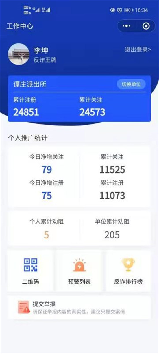 今年2月,商水縣公安局開始利用“金鐘罩”預(yù)防電信詐騙活動(dòng)。在譚莊派出所多年的李坤拿著分配給自己的二維碼,做個(gè)小牌子掛到脖子上,開始他的“金鐘罩”宣傳注冊(cè)工作。轄區(qū)企事業(yè)單位、村莊、群眾文化廣場(chǎng)、KTV、網(wǎng)吧、超市、洗浴中心等人員密集場(chǎng)所是他必須進(jìn)的地方,見親戚說、逢朋友講,三句話離不開“金鐘罩”反詐騙宣傳。