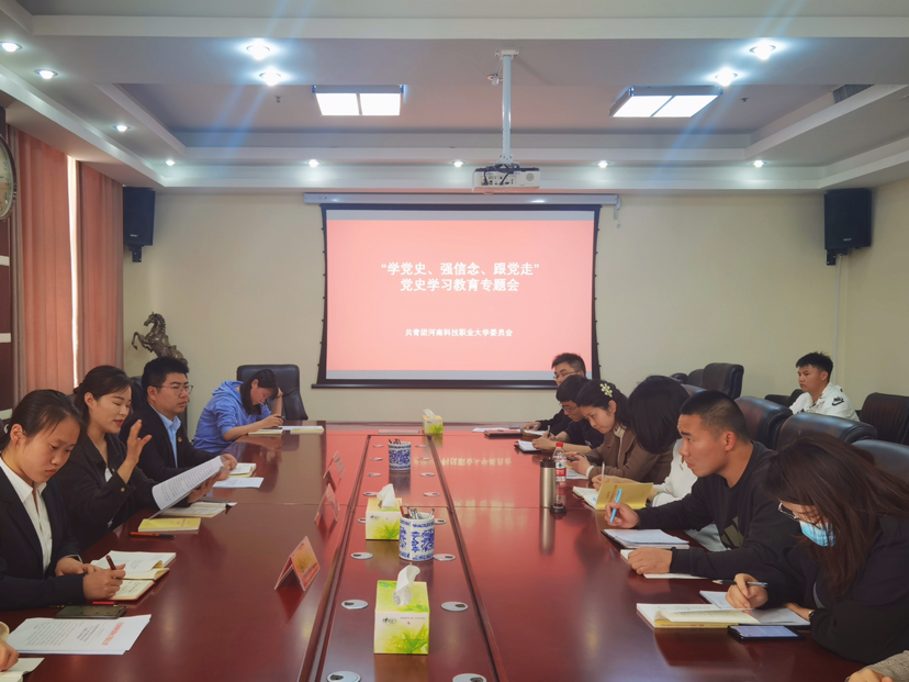 為認(rèn)真貫徹習(xí)近平總書記在黨史學(xué)習(xí)教育動(dòng)員大會(huì)上的重要講話精神,引領(lǐng)廣大黨員深入學(xué)習(xí)黨的歷史,深化青年厚植愛黨、愛國、愛社會(huì)主義的情感,4月29日,共青團(tuán)河南科技職業(yè)大學(xué)委員會(huì)召開“學(xué)黨史、強(qiáng)信念、跟黨走"黨史學(xué)習(xí)教育專題會(huì)。