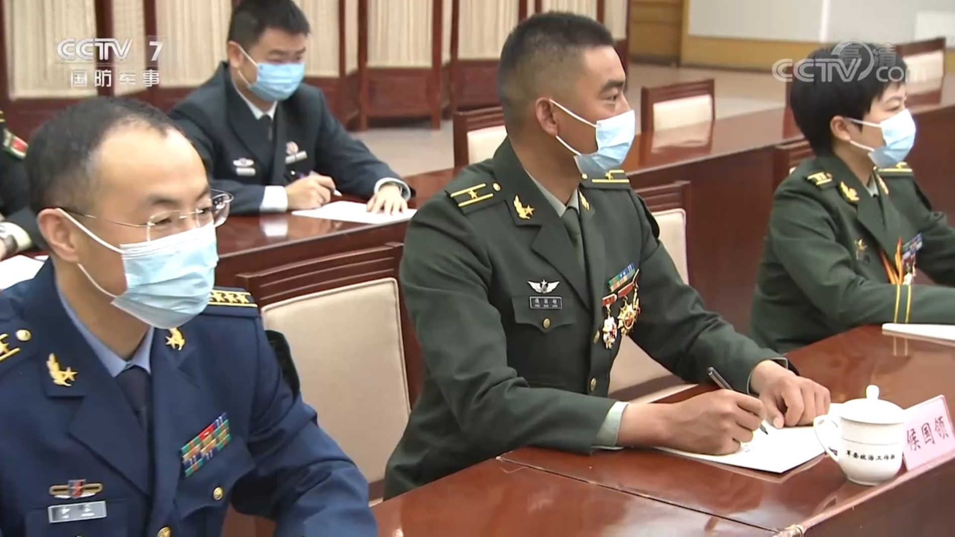 央視新聞截圖,侯國領(lǐng)(中)在座談會(huì)上認(rèn)真聽講