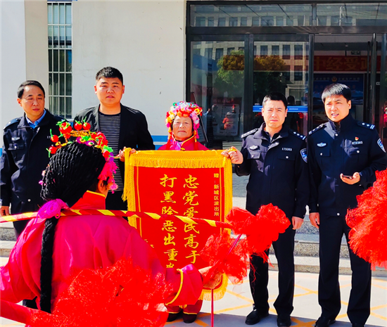 “忠黨愛(ài)民高于天,掃黑除惡出重拳。感謝你們神速破案,你們真是群眾的保護(hù)神?!?月1日,鄲城縣新城街道辦事處一電動(dòng)車失主來(lái)到新城派出所,送來(lái)錦旗,感激地說(shuō)。