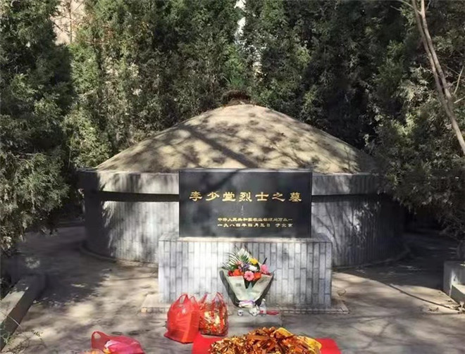 李少堂帶領(lǐng)隊(duì)伍轉(zhuǎn)戰(zhàn)贛榆時(shí)被叛徒告密,十幾位地下黨員遭到了國民黨反動(dòng)派的圍剿,他們殘忍地砍下李少堂等人的頭顱,拋尸荒野。還派人到李少堂的家里大肆搜刮,家里所有像樣的東西都被洗劫一空,連一床被子都沒剩下,好在藏在墻縫里的兩塊銀元逃過一劫。妻子托人四處尋找李少堂的遺體,可正值酷暑,一個(gè)星期后找到遺體時(shí),堆在一起的烈士遺體都已經(jīng)腐化不堪,甚至無法辨認(rèn)身份。此時(shí)李少堂妻子正身懷六甲,誰也不敢讓他看到遺體的慘狀,便將李少堂的遺物放在棺材內(nèi)匆匆下葬。