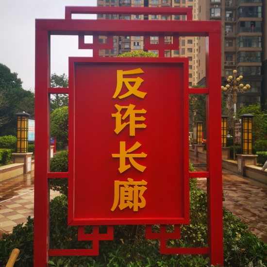 據(jù)介紹,“金色東方”小區(qū)建成于2014年,占地120畝,居住人口2516戶,共8176人。廣場是小區(qū)里最熱鬧的地方。這里不僅擺放著詐騙案例展板,而且LED大屏上反復播放“局長說反詐”視頻,時刻提醒居民繃緊防詐弦。通過張貼標語、擺放展板、播放視頻等形式,“金色東方”小區(qū)營造了全方位反詐的濃厚氛圍,基本達到“處處有提醒”的效果。據(jù)悉,2月份以來,該小區(qū)未發(fā)生一起電信網(wǎng)絡詐騙案件。