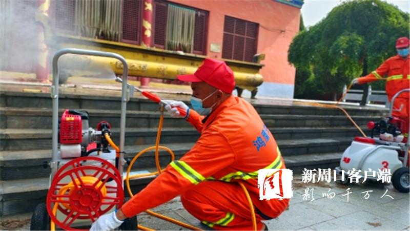 在女?huà)z景區(qū),只見(jiàn)老關(guān)和其他3名消殺人員發(fā)動(dòng)機(jī)器、拉出噴管、手提噴槍?zhuān)贿吳斑M(jìn),一邊揮動(dòng),白色水霧隨之噴涌而出,所到之處細(xì)菌病毒“無(wú)處遁形”。大家齊心協(xié)力,很快就把景區(qū)的角角落落消殺個(gè)遍。