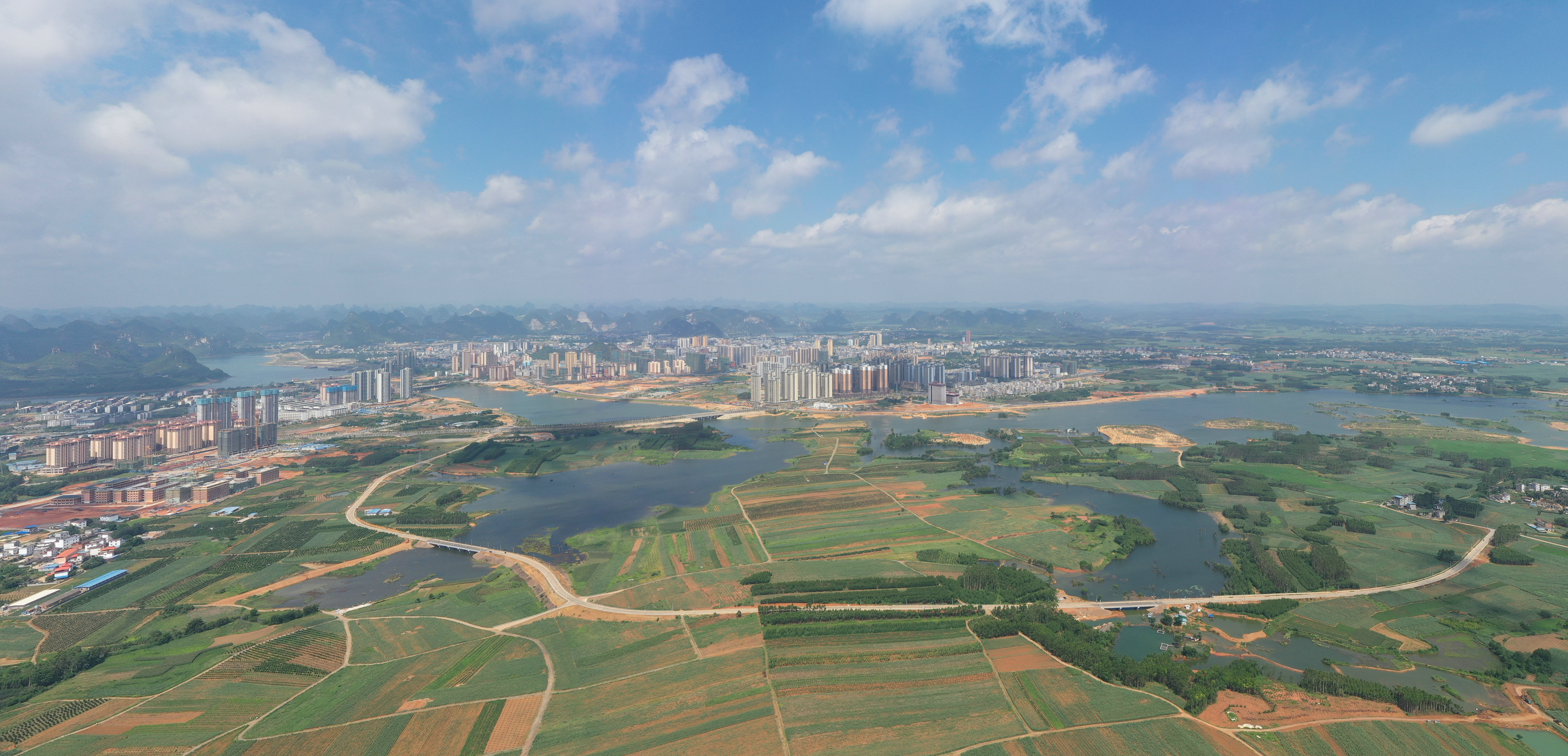 圖3:武宣縣城東七星湖鳥(niǎo)瞰圖。梁以松 攝