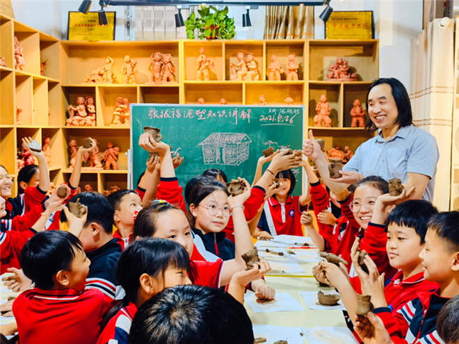 中小學生國慶節(jié)弘揚非遺文化 學習張振福泥塑鈞瓷技法