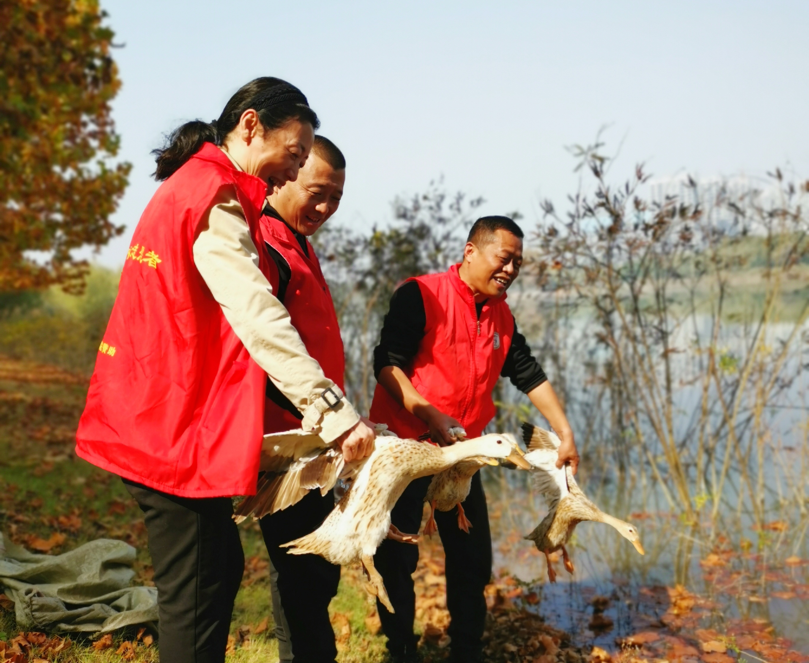 10月30日上午,周口報(bào)業(yè)傳媒集團(tuán)志愿者們在植物園舉行放生儀式。據(jù)悉,此次放生的10只翎花鴨是今年龍舟賽翎船撲鴨比賽用鴨,經(jīng)過戶外馴化,已經(jīng)適應(yīng)野外生存。小鴨回歸大自然,與湖光山色和諧共生。③