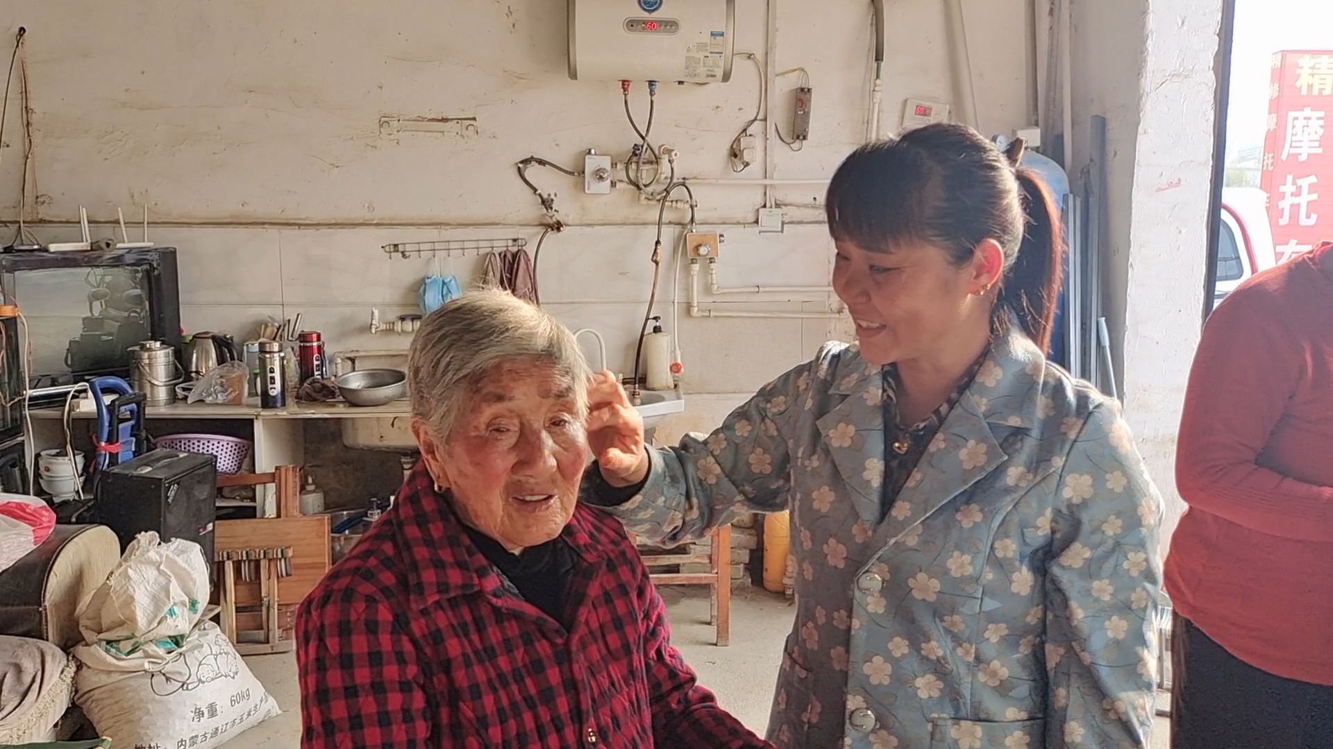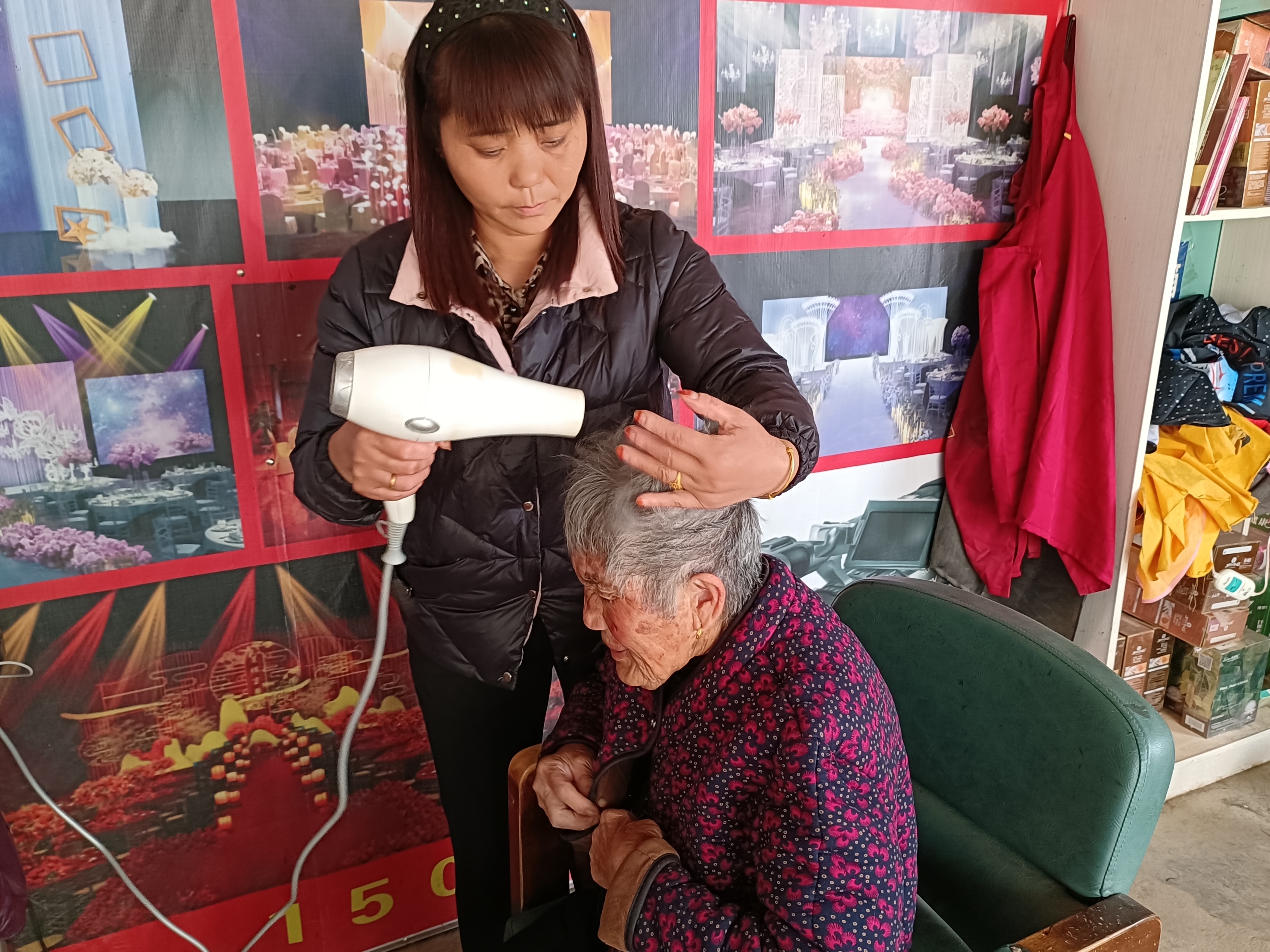 兒媳給楊秀真老人吹頭發(fā)