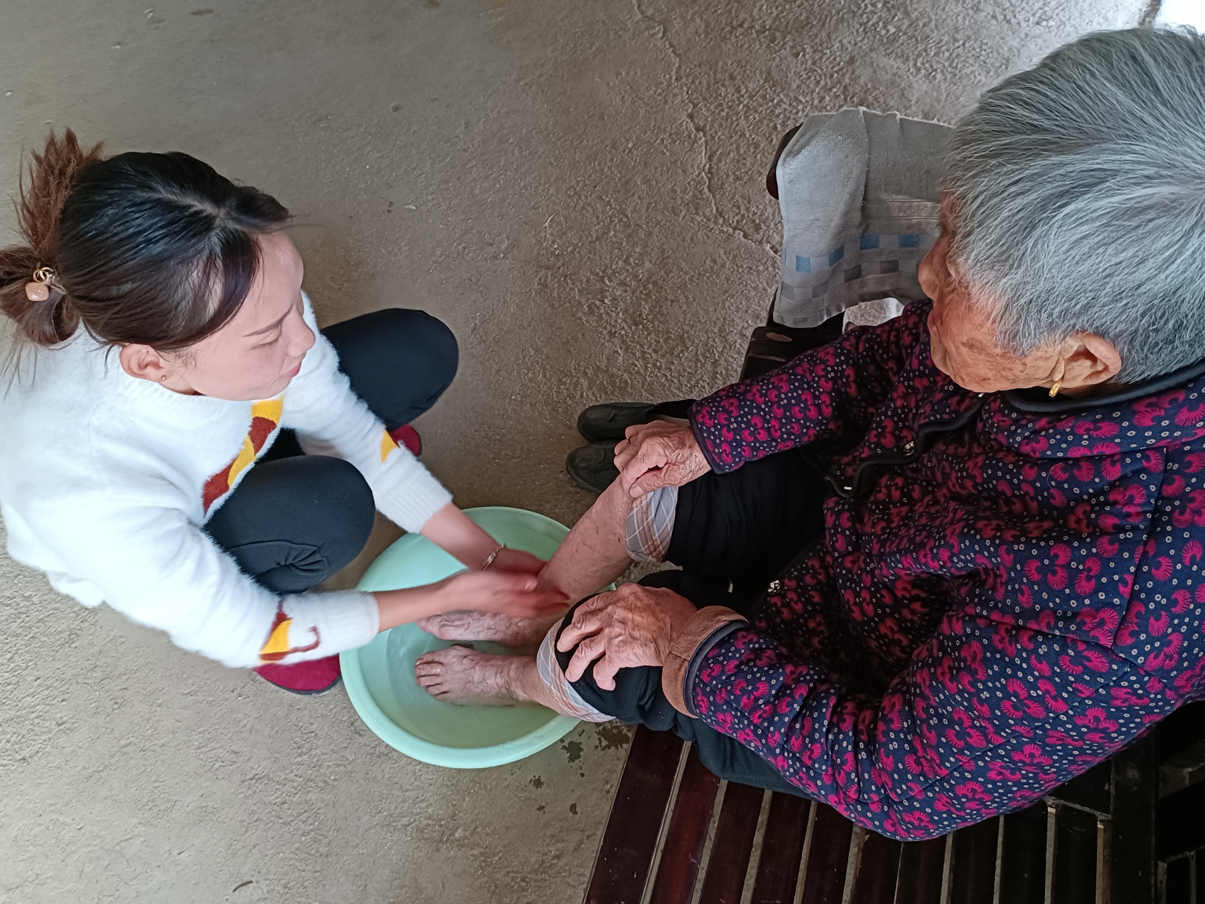 孫女給奶奶洗腳