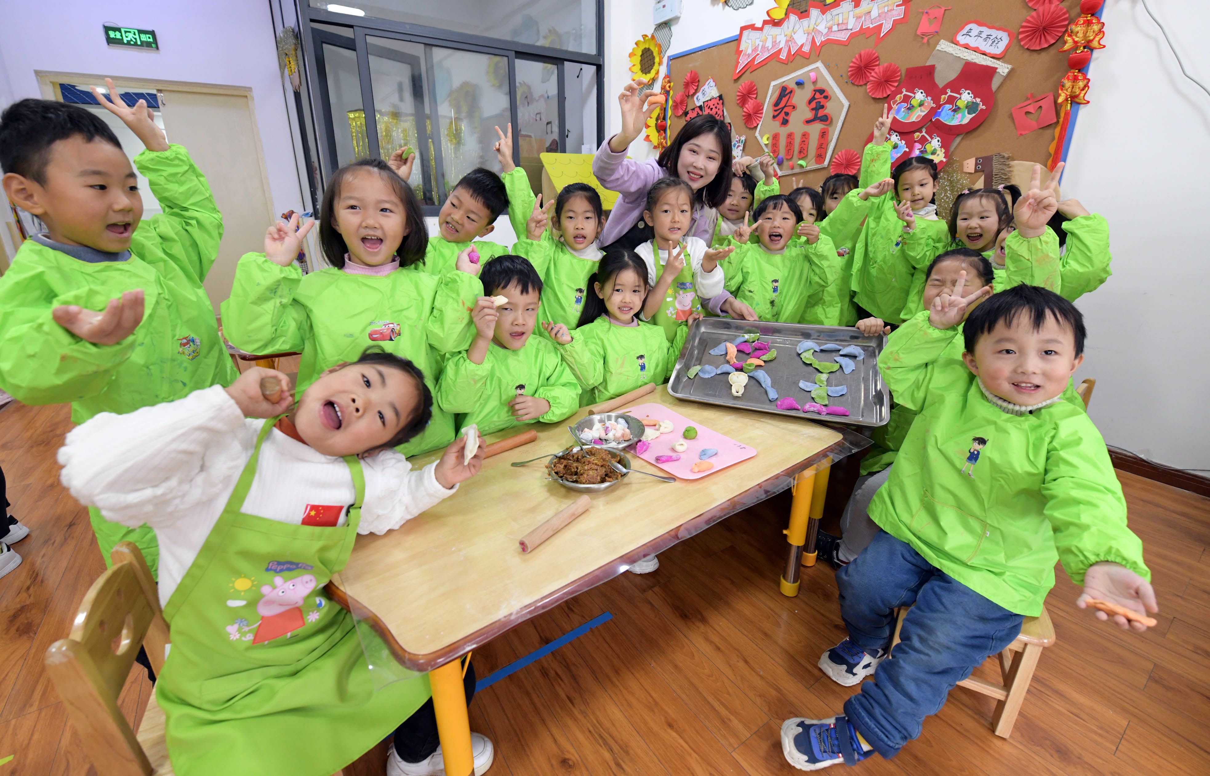 小朋友用五彩餃子迎冬至。