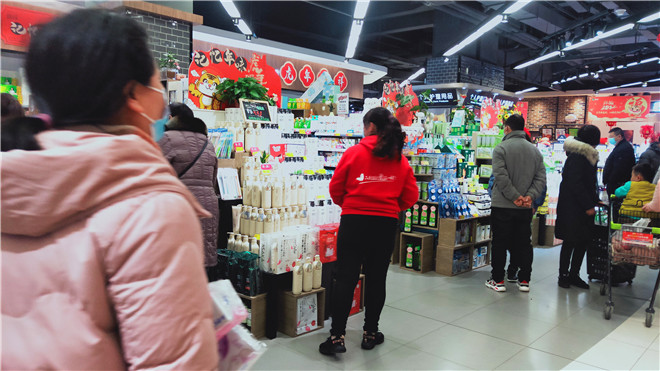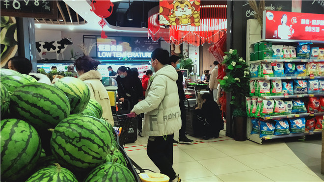 春節(jié)將至,我市各大超市處處是濃濃的年味。1月26日,記者走進(jìn)我市中心城區(qū)各大超市發(fā)現(xiàn),超市內(nèi)熙熙攘攘,生鮮果蔬區(qū)域消費(fèi)者尤多,絕大多數(shù)消費(fèi)者自覺佩戴口罩。②11