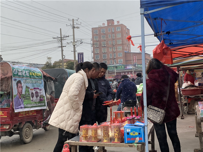 小年一過,年味愈發(fā)濃烈起來。固墻鎮(zhèn)集市是周邊幾個(gè)鄉(xiāng)鎮(zhèn)中最大的集市,從東頭綿延到西頭,南頭延伸至北頭,形成十字狀,每日趕年集的達(dá)3萬人以上,熙熙攘攘,整個(gè)道路被圍得水泄不通。商販叫賣聲、顧客還價(jià)聲、熟人之間的新年問候聲和孩子們的追逐嬉笑聲,此起彼伏、好不熱鬧。集市兩邊的攤主擺著各式各樣的大料、新鮮的瓜果蔬菜、種類齊全的鹵肉活魚、新年必備的服裝鞋帽,還有孩子們最愛的水果糖……倘若你在集市上逛上那么一圈,年貨都能一一置辦齊全。