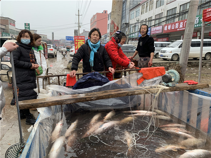 固墻鎮(zhèn)集市上活魚攤位生意火爆