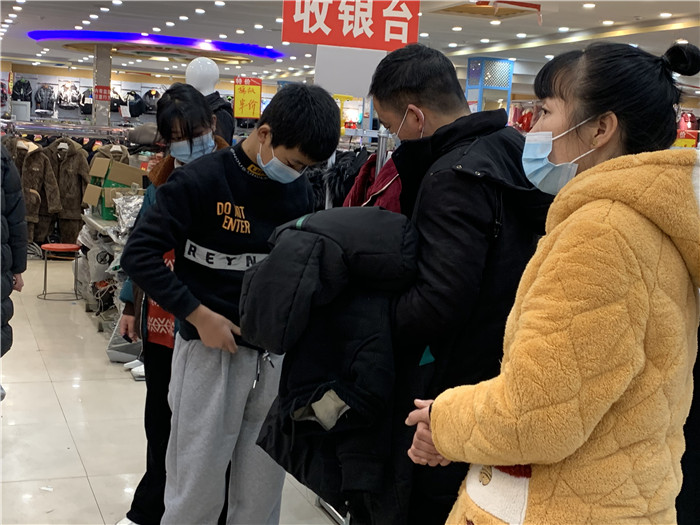 父母在給孩子挑選新衣服