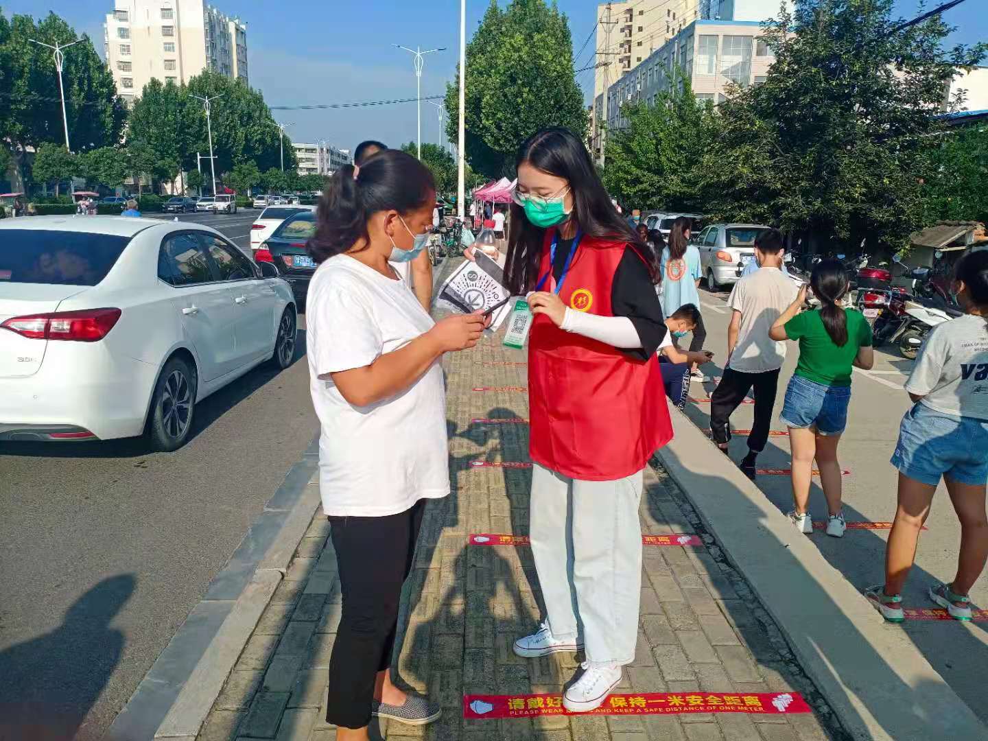 在三川社工疫情防控隊(duì)伍中,還有這樣一名少年,利用暑期的休息時(shí)間,和身為義工的媽媽一起在核酸檢測(cè)點(diǎn)戰(zhàn)“疫”。在人群中,他穿著紅馬甲,一遍遍提醒現(xiàn)場(chǎng)群眾有序排隊(duì)、戴好口罩,耐心幫助不會(huì)操作的老人完成信息采集、掃碼登記。紅馬甲濕了又干,嗓子又干又燥,但是他沒有絲毫退縮,一直堅(jiān)守到核酸檢測(cè)全部結(jié)束。