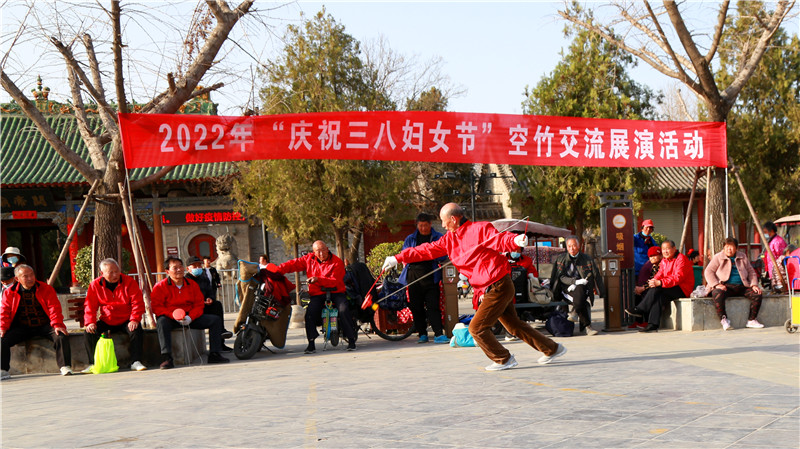 3月8日,周口市空竹運(yùn)動(dòng)協(xié)會(huì)在周口關(guān)帝廟廣場(chǎng)舉行慶祝“三八”國際婦女節(jié)空竹交流展演活動(dòng),20多名空竹愛好者相繼表演了空竹運(yùn)動(dòng)的各種技法,讓現(xiàn)場(chǎng)群眾大開眼界。