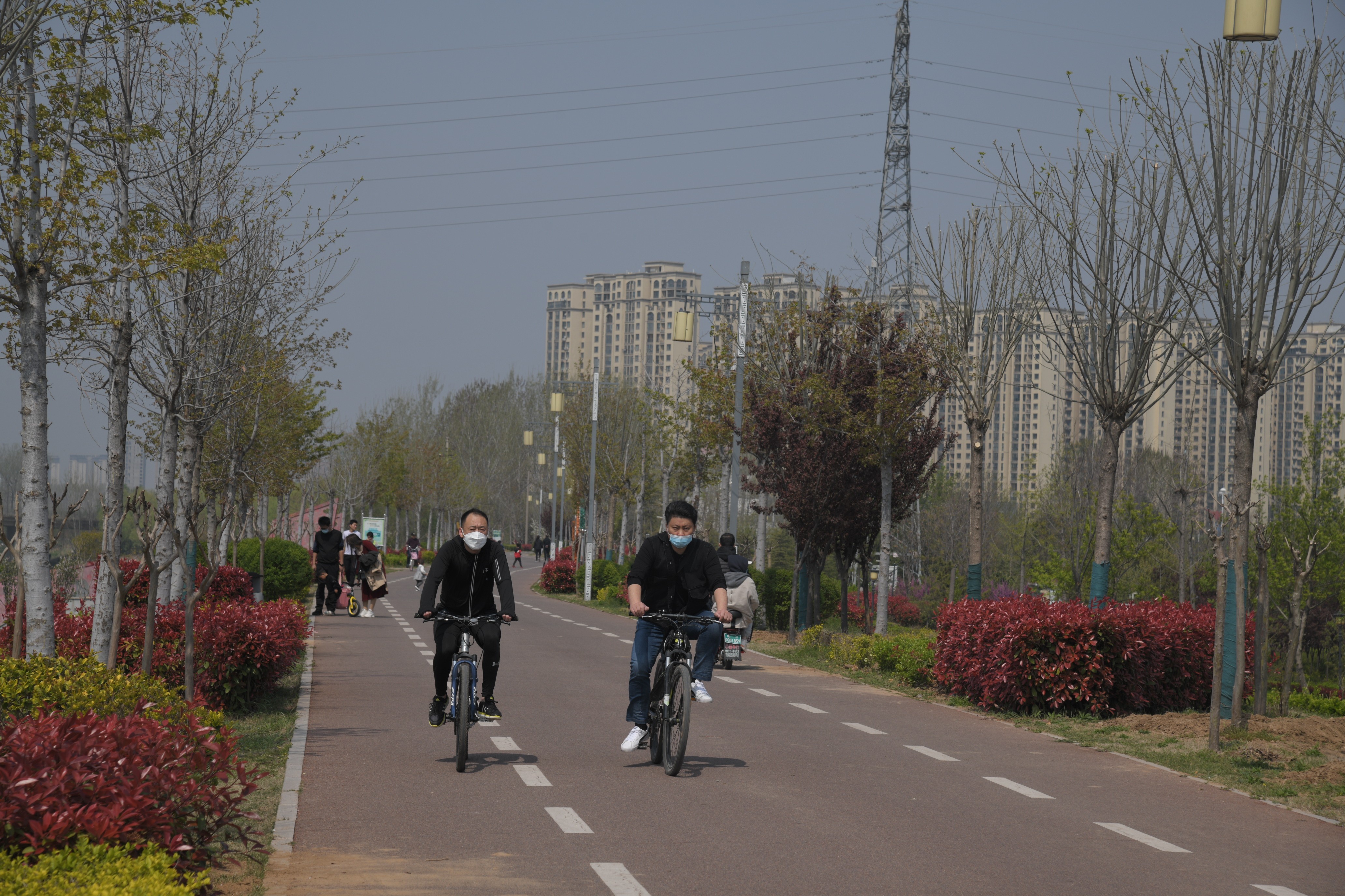 4月5日,市民在沙潁河畔休閑游玩。