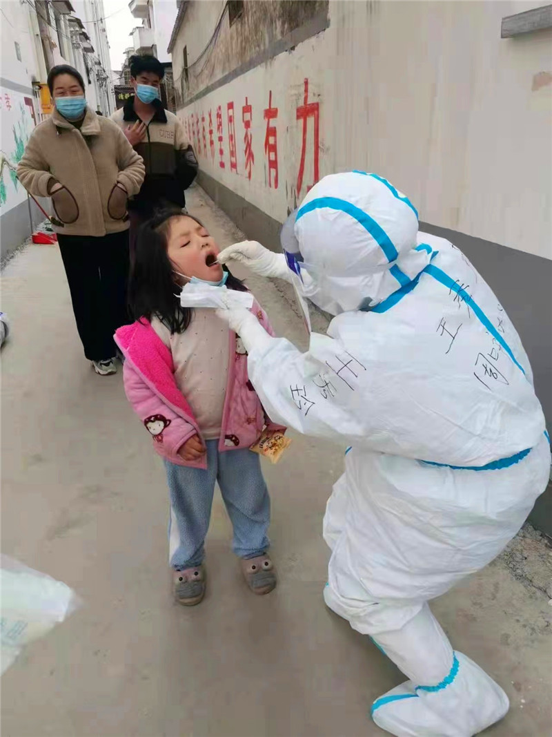 在太康戰(zhàn)“疫”中,第二醫(yī)療隊執(zhí)行的是封控區(qū)核酸采樣任務、應急核酸采樣任務,并兼做初篩陽性患者復核采樣工作。在這披星戴月的14天里,王秀玲每天直面病毒,不分晝夜,轉戰(zhàn)于20多個封控區(qū),穿梭在人人避之不及的地方。她和隊員們每天手攜采樣包、身穿防護服,哪里有需要就到哪里去,以沖刺的姿勢拼出了核酸采樣的“加速度”。14天共入戶核酸采集樣本8萬余份,結合在太康工作經驗,制定了《周口市中心醫(yī)院入戶核酸采集步驟和流程》,受到了上級領導的充分肯定,并被全市各地疫情防控指揮部推廣實施,為有效阻擊疫情蔓延貢獻了周口市中心醫(yī)院的智慧。③10