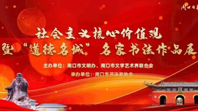 為大力弘揚和培育社會主義核心價值觀,挖掘優(yōu)秀歷史文化資源,傳承周口地域文化特質(zhì)和精神標識,以書法的形式展示“道德名城、魅力周口”建設成果,講好周口故事,展現(xiàn)周口形象,特舉辦社會主義核心價值觀暨“道德名城”名家書法作品展。