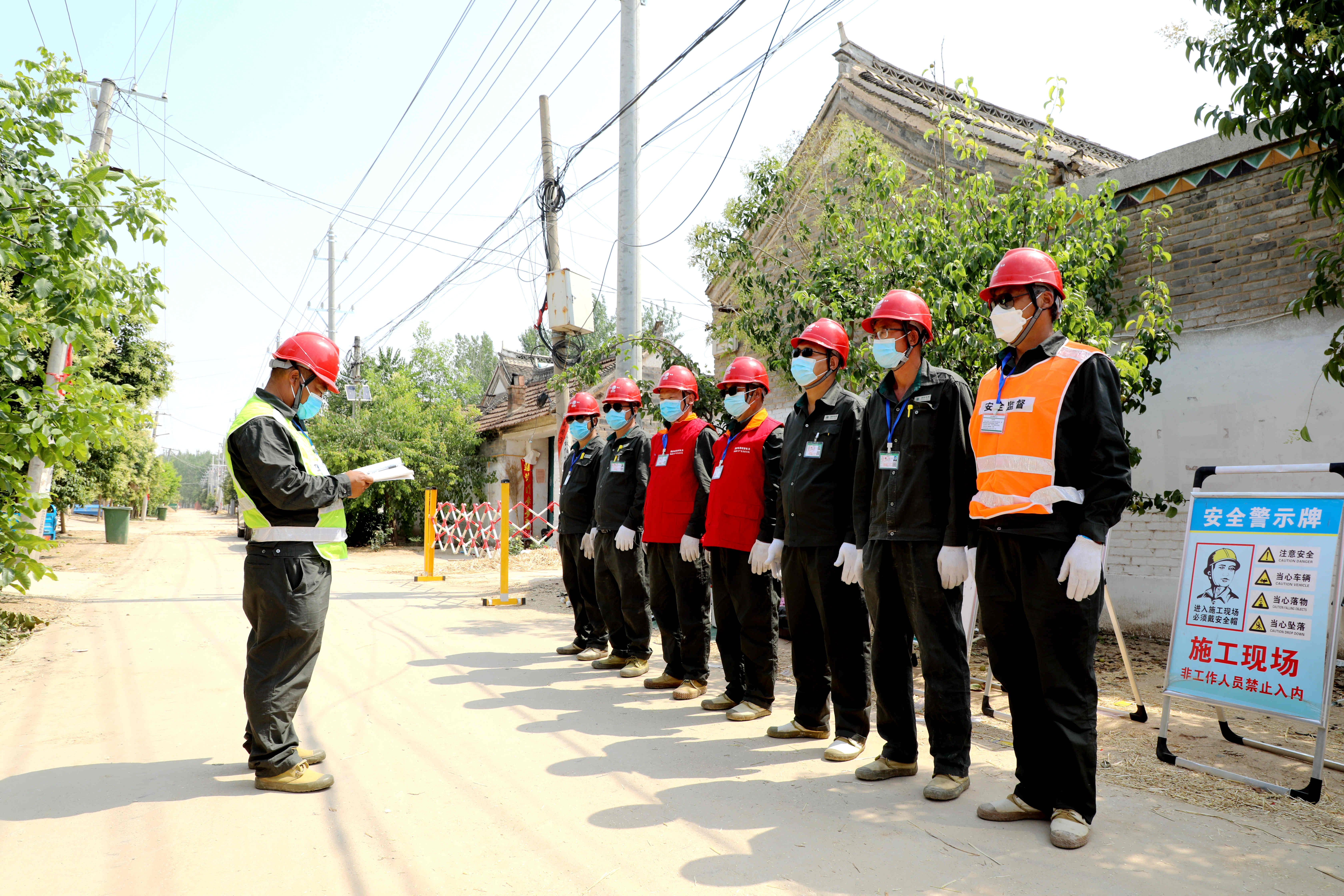 6月9日,在西華縣皮營鄉(xiāng)齊莊行政村潭張1號(hào)臺(tái)區(qū)施工現(xiàn)場,國網(wǎng)西華縣供電公司組織焦裕祿共產(chǎn)黨員服務(wù)隊(duì)帶領(lǐng)施工人員分工協(xié)作、高效配合,安裝電表箱、更換下戶線、增容變壓器、新建低壓線路。