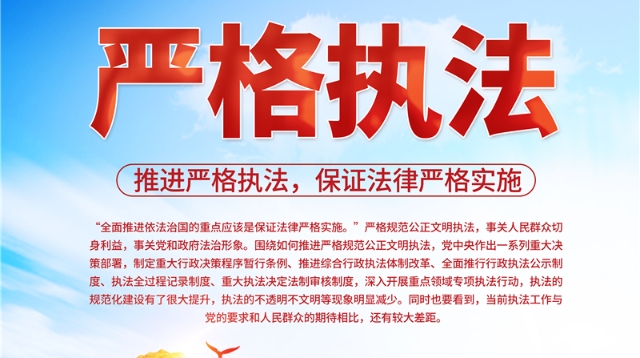 “全面依法治國(guó)的重點(diǎn)應(yīng)該是保證法律嚴(yán)格實(shí)施?!眹?yán)格規(guī)范公正文明執(zhí)法,事關(guān)人民群眾切身利益,事關(guān)黨和政府法治形象。