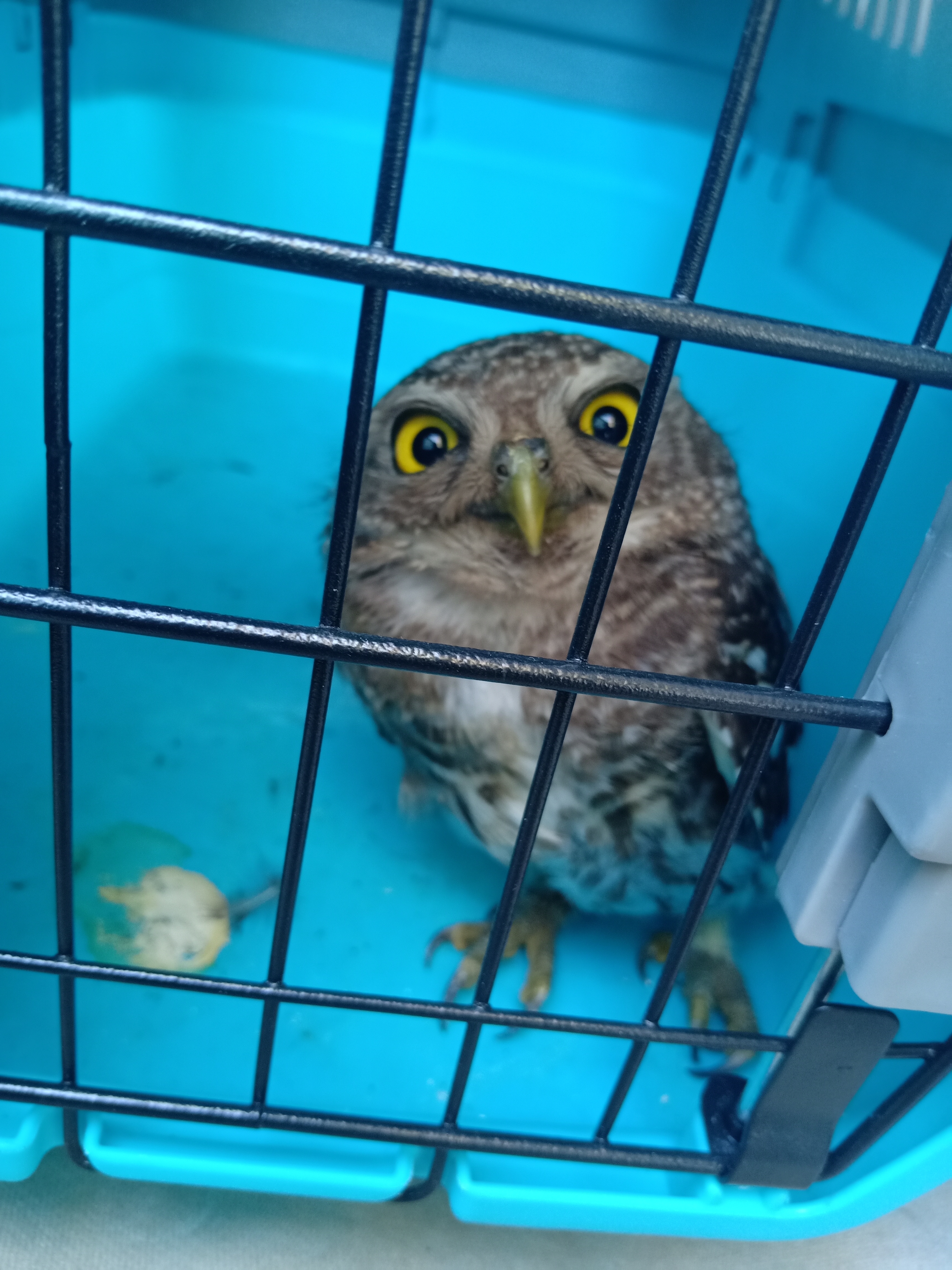 項城野保人員一天救助兩只“落難”斑頭鵂鹠 一只受傷 一只中暑