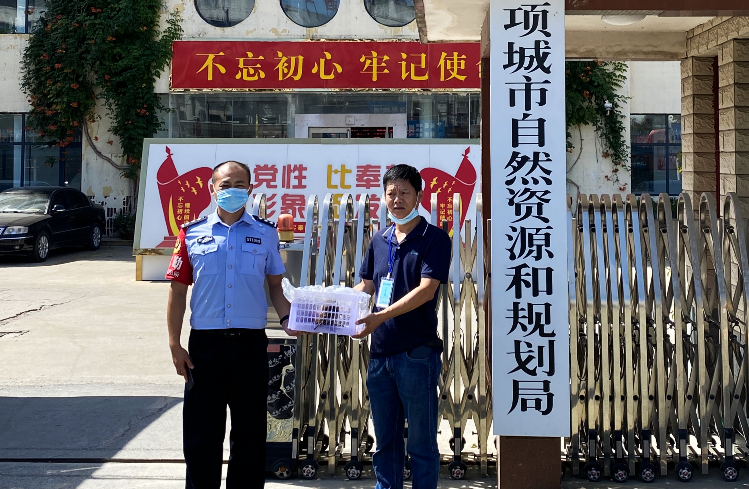 8月14日9時許,天氣炎熱,項城市公安局水寨派出所一民警駕車來到項城市自然資源和規(guī)劃局,向野生動物保護人員張向忠現場移送一只受傷的斑頭鵂鹠。