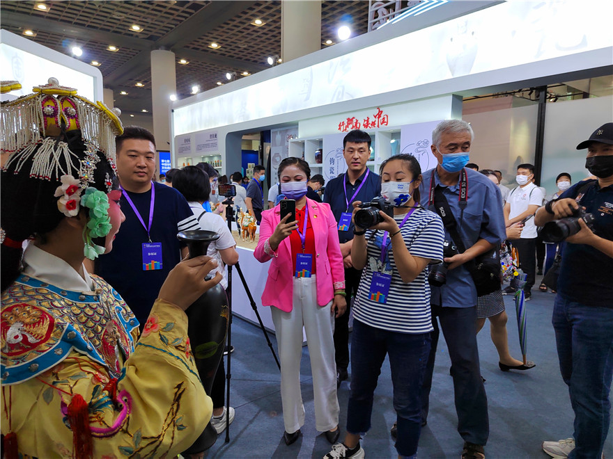 中國非物質(zhì)文化遺產(chǎn)博覽會,每兩年舉辦一屆,是非遺領(lǐng)域的全國性重要品牌活動,已成為展示非遺保護成果、宣傳非遺保護理念、引領(lǐng)非遺保護工作的重要平臺。本屆非物質(zhì)文化遺產(chǎn)博覽會為期5天,河南省有16個非遺項目、4個非遺美食企業(yè)參展,布置在文化底蘊深厚的“行走河南·讀懂中國”展區(qū)。淮陽黑陶、仰韶彩陶、唐三彩、魯山窯、汝瓷、鈞瓷、登封窯、當陽峪絞胎瓷、澄泥硯、??h泥咕咕燒制技藝在展廳一一亮相。淮陽黑陶燒制技藝省級傳承人張輝攜帶的部分作品以大氣、精美的文化底蘊深深吸引著人們觀賞,各派非遺戲曲傳人也紛紛捧起他的黑陶作品展示中原古老的黑陶藝術(shù)文化。②15