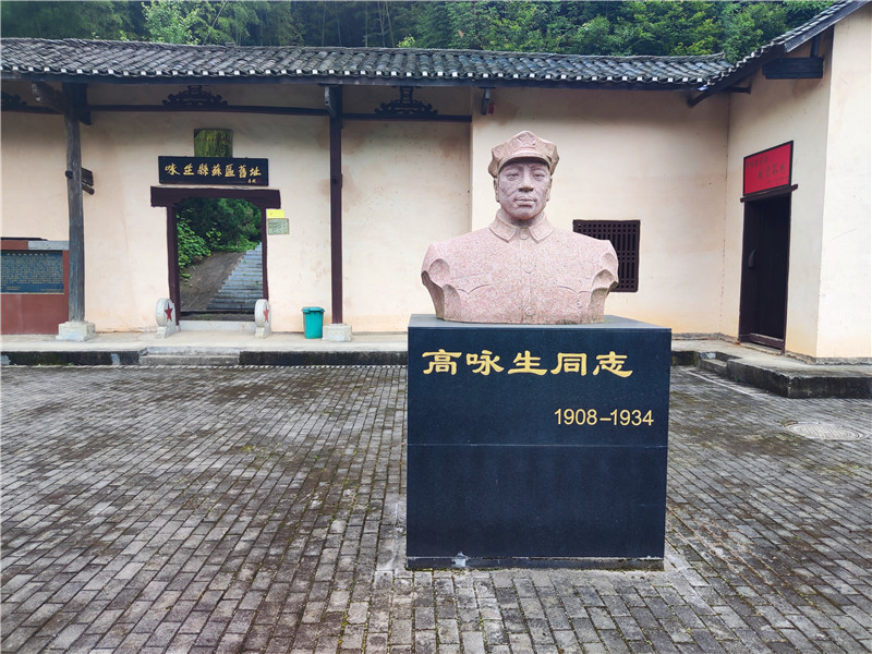 舊址前廣場(chǎng)上,有高詠生烈士石刻雕像。他頭戴紅軍帽,目光如炬,深情地望著遠(yuǎn)處的蒼茫青山,流露出欣慰的笑容。記者輕輕撫摸雕像。此時(shí)此刻,沉默恰是最好的語言。