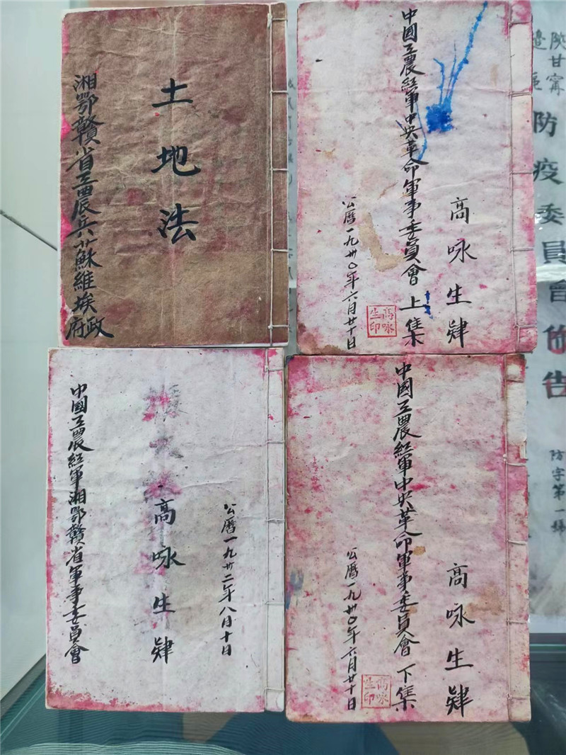 李洪東收藏的高詠生手寫筆記共有四本,包括高詠生用毛筆抄寫的公文《中國(guó)工農(nóng)紅軍中央革命軍事委員會(huì)》文件上集和下集、《湘鄂贛省工農(nóng)兵蘇維埃政府土地法》、1932年書寫的文件《目前擴(kuò)大紅軍的計(jì)劃大綱》。文件上面都有“高詠生肄”幾個(gè)字,蓋“高詠生印”大紅印章。