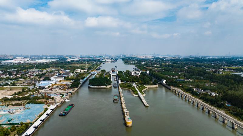9月27日上午,“豫貨出海、周向世界”采訪組B組來(lái)到位于揚(yáng)州市長(zhǎng)江北岸的施橋船閘。古鎮(zhèn)施橋,長(zhǎng)江與大運(yùn)河在這里交匯,施橋船閘就位于這個(gè)交匯點(diǎn)上。