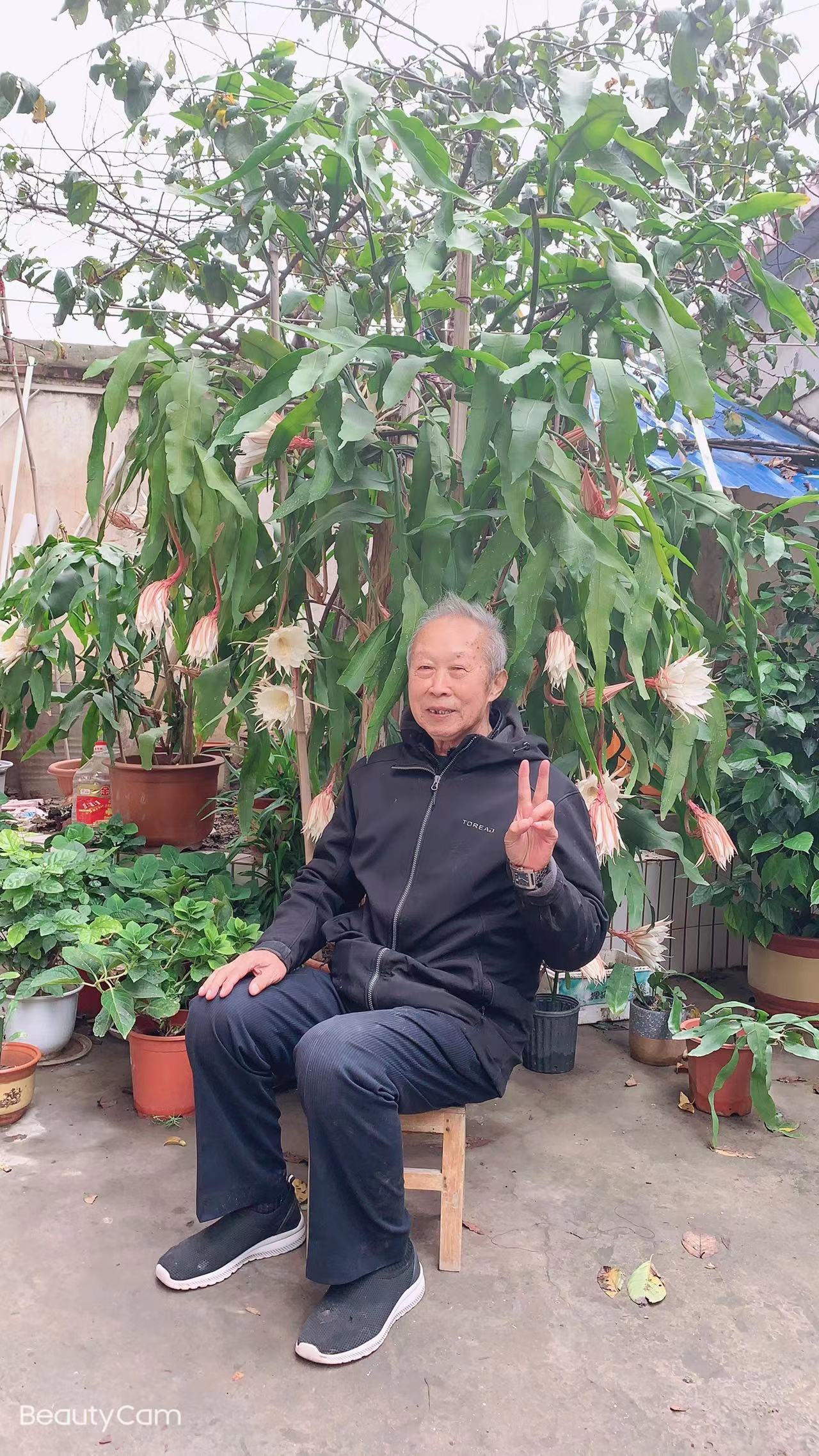 站在曇花旁,苗天才夫婦迎來送往,雖然年事已高,他們依然耳聰目明、言談清晰,全無老態(tài)龍鐘之感?;ㄋ朴?,發(fā)如雪,命運的饋贈,為何對他們格外慷慨?