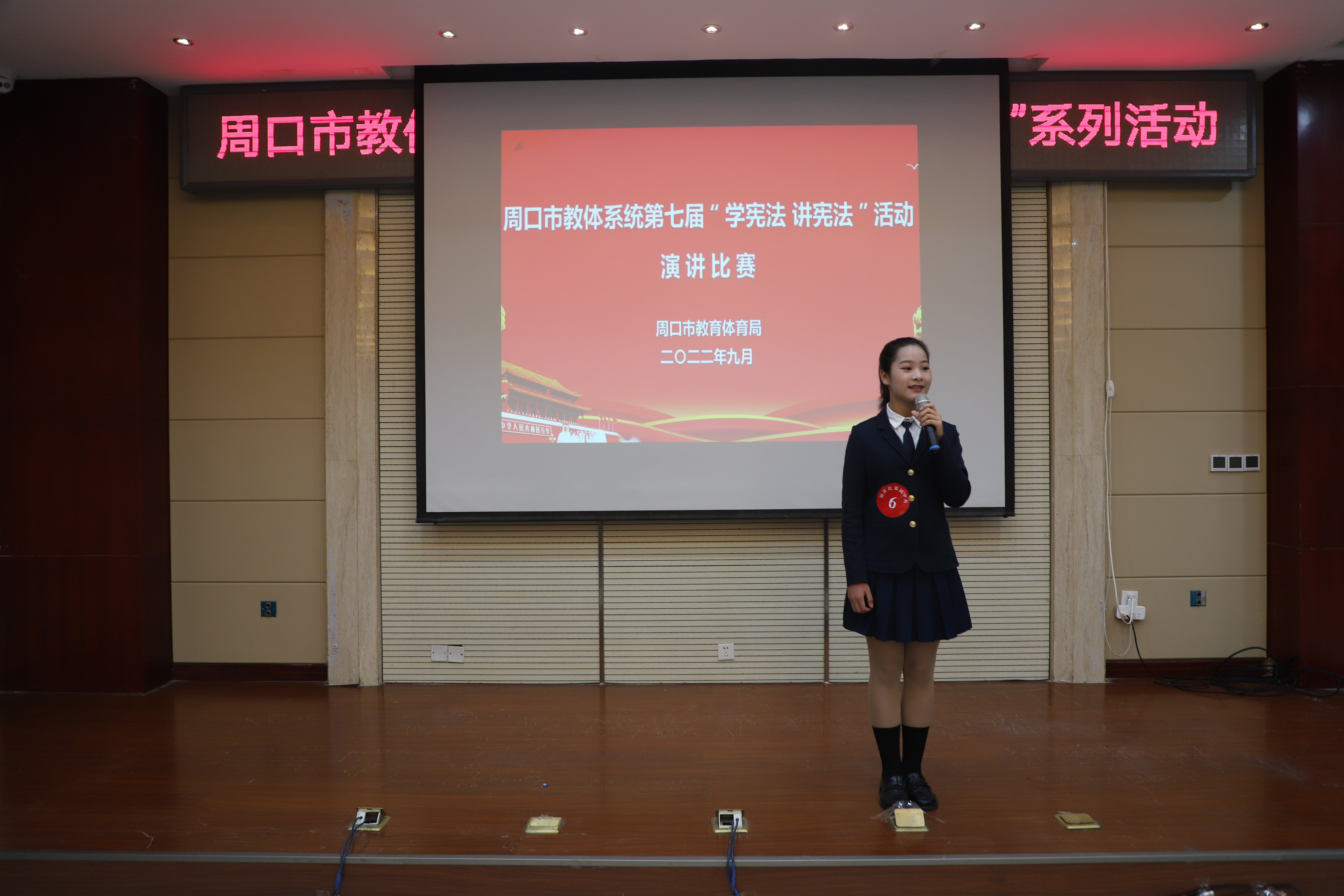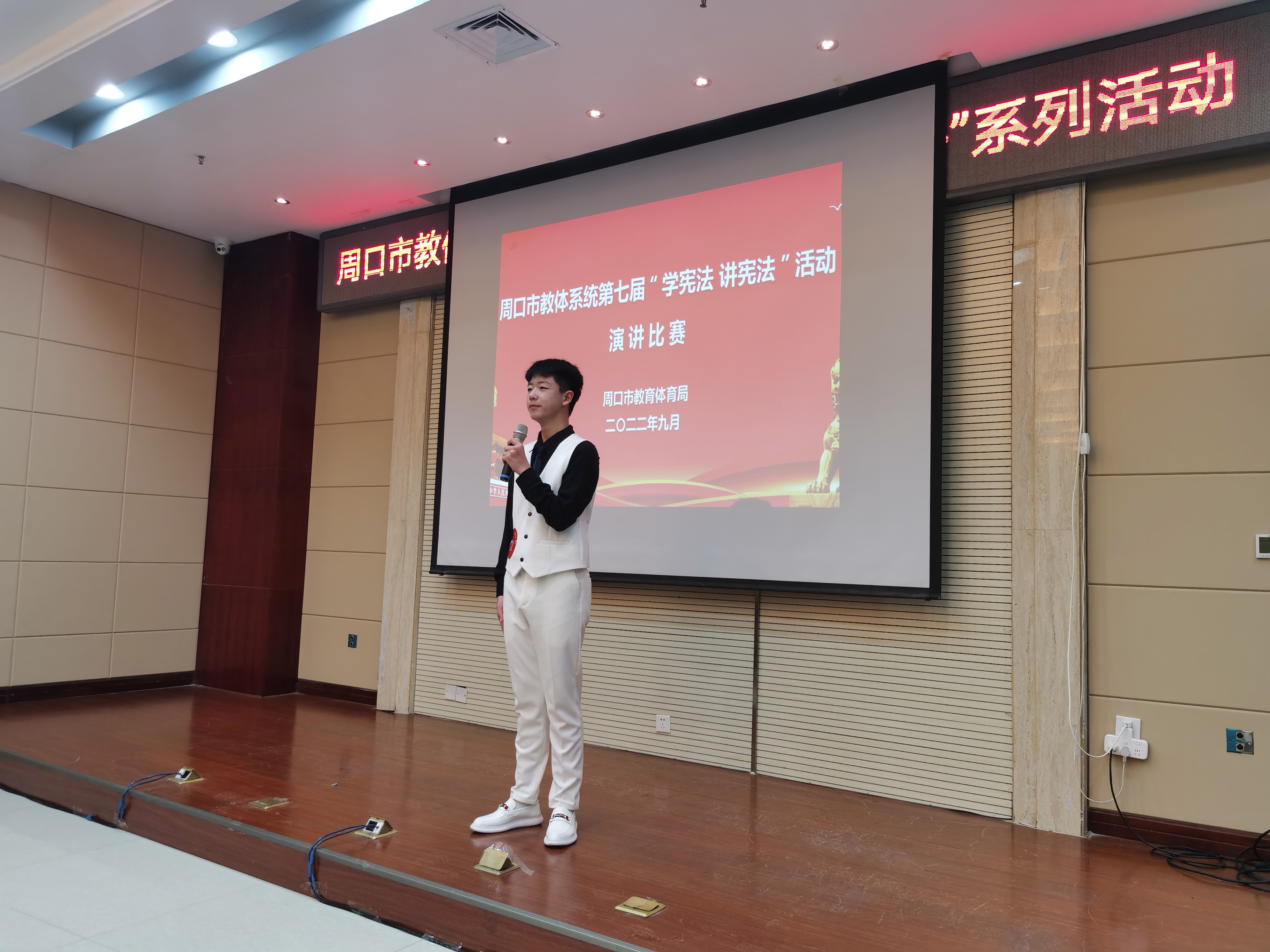 為進一步弘揚憲法精神,推進廣大中小學(xué)生憲法學(xué)習(xí)教育活動,增強師生法治意識,豐富師生法治知識,9月21日,由周口市教體局主辦的第七屆中小學(xué)生“學(xué)憲法 講憲法”演講比賽和知識競賽舉行。
