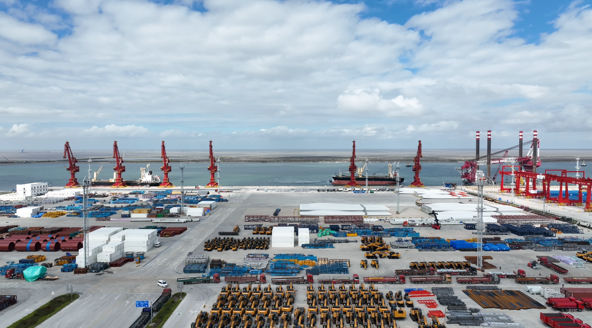 站在呂四起步港港區(qū)綜合樓的最高處,極目遠(yuǎn)眺,港口景觀盡收眼底。港池父親般寬闊的臂膀,將一艘艘越洋而來(lái)的萬(wàn)噸巨輪攬入懷中;挖掘機(jī)和風(fēng)機(jī)葉片被“碼”得整整齊齊,正待裝船出口;機(jī)器不停運(yùn)轉(zhuǎn),給??康拇谎b卸貨物;重型貨柜車進(jìn)出有序、川流不息。而令人驚奇的是,偌大的港口幾乎沒(méi)有看到一個(gè)工作人員。