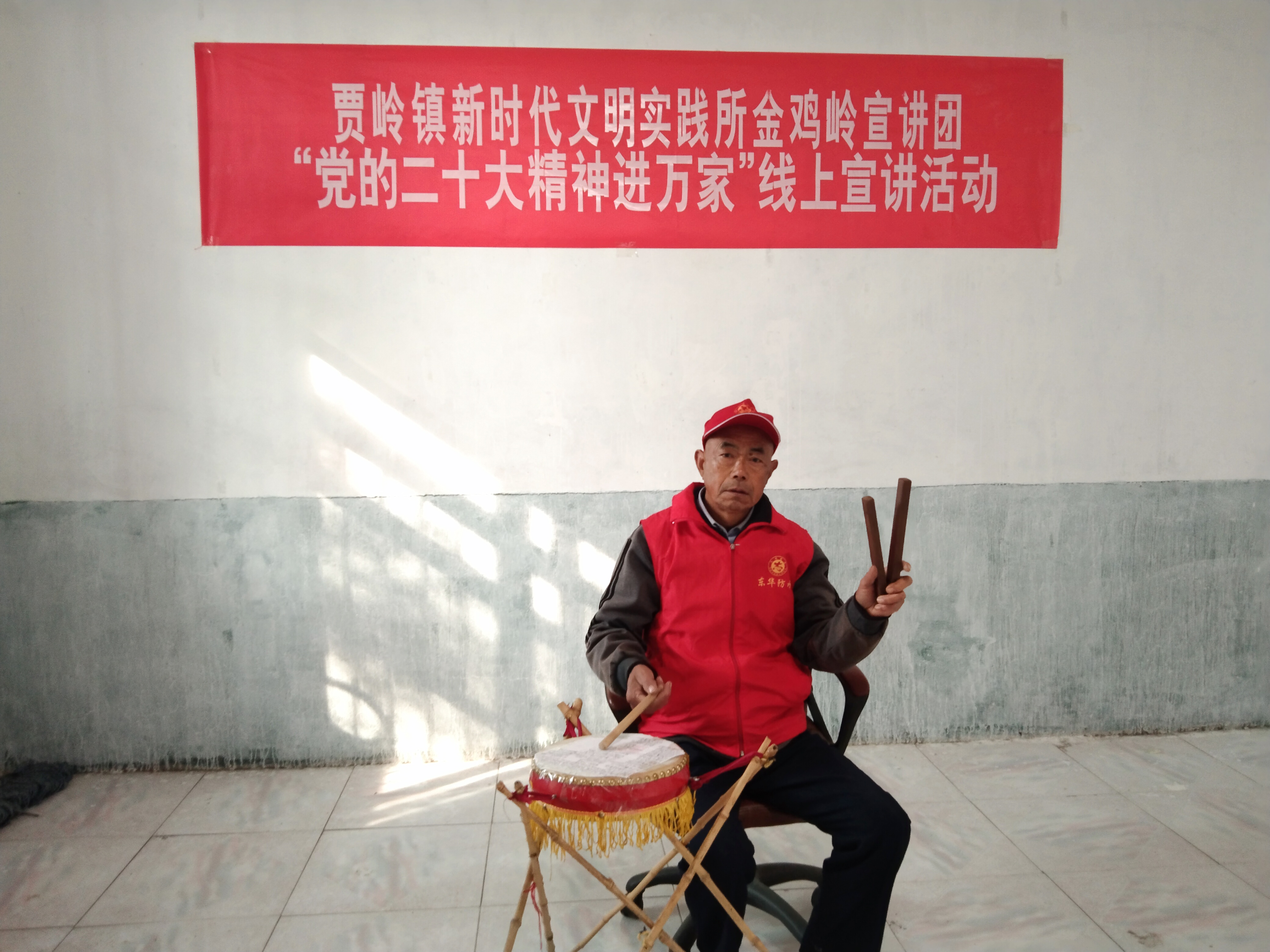 近日,項(xiàng)城市賈嶺鎮(zhèn)新時(shí)代文明實(shí)踐所金雞嶺宣講團(tuán)志愿者、七旬老人閆汝才閑暇就會(huì)坐在一張凳子上,一手敲鼓、一手夾板,配合唱腔、道白,利用非遺“大鼓書”藝術(shù)表演形式,通過(guò)抖音平臺(tái)在線上宣傳黨的二十大精神。