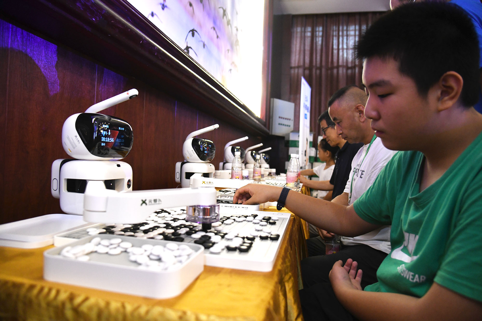 ?8月15日上午,圍棋棋手們在賽事間隙,和機器人對弈,增添不少樂趣。在2023中國淮陽第二屆“荷花杯”全國業(yè)余圍棋公開賽的賽場邊,賽事方特意擺放五部圍棋機器人,供棋手們在賽事之余娛樂。工作人員介紹,這些圍棋機器人很強大,不上網(wǎng)聯(lián)機的情況下,它們具有業(yè)余圍棋三段水平,如果上網(wǎng)聯(lián)機,則具有職業(yè)九段能力,人機大戰(zhàn),棋手們未必能贏了機器人。