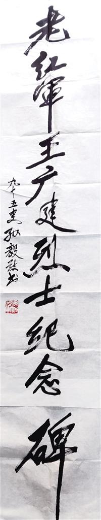 1999年,孫毅將軍95歲時為王廣建烈士紀(jì)念碑題寫的碑文。