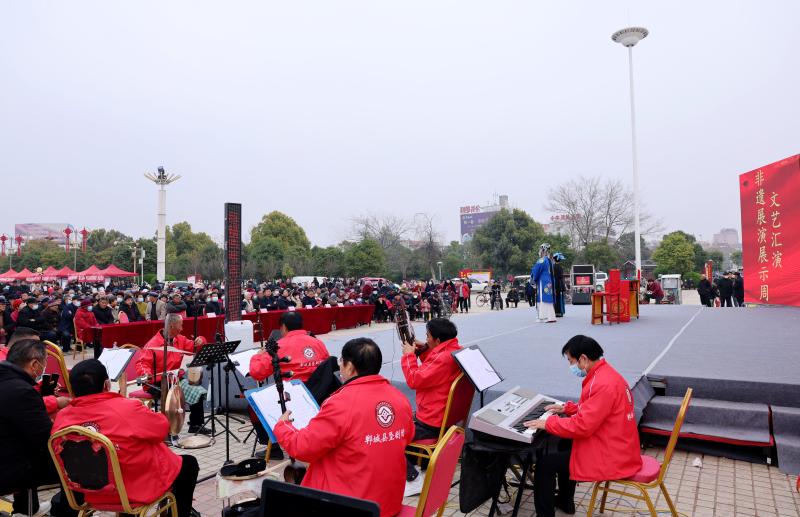 鄲城縣委常委、宣傳部長劉鋒磊告訴記者,非物質(zhì)文化遺產(chǎn)凝結(jié)和傳遞著一個民族和地域的歷史記憶、共同情感和經(jīng)驗(yàn)智慧,是發(fā)展文化產(chǎn)業(yè)的重要的資源,是傳統(tǒng)文化的無價瑰寶,是人類文明進(jìn)程中最具代表性、最精華的篇章。本次展演活動以“學(xué)習(xí)二十大、奮進(jìn)新征程”為主題,用展演、展示相結(jié)合的方式,組織縣域內(nèi)100多家非遺傳承人展示絕活,讓全縣人民既嘗到鄲城名吃,又了解了鄲城文化,讓群眾近距離體驗(yàn)家鄉(xiāng)文化遺產(chǎn)的魅力,進(jìn)一步激發(fā)廣大群眾熱愛優(yōu)秀傳統(tǒng)文化熱情,增強(qiáng)保護(hù)文化遺產(chǎn)的自覺性,營造全社會關(guān)注、挖掘、保護(hù)和傳承文化遺產(chǎn)的良好氛圍。①2