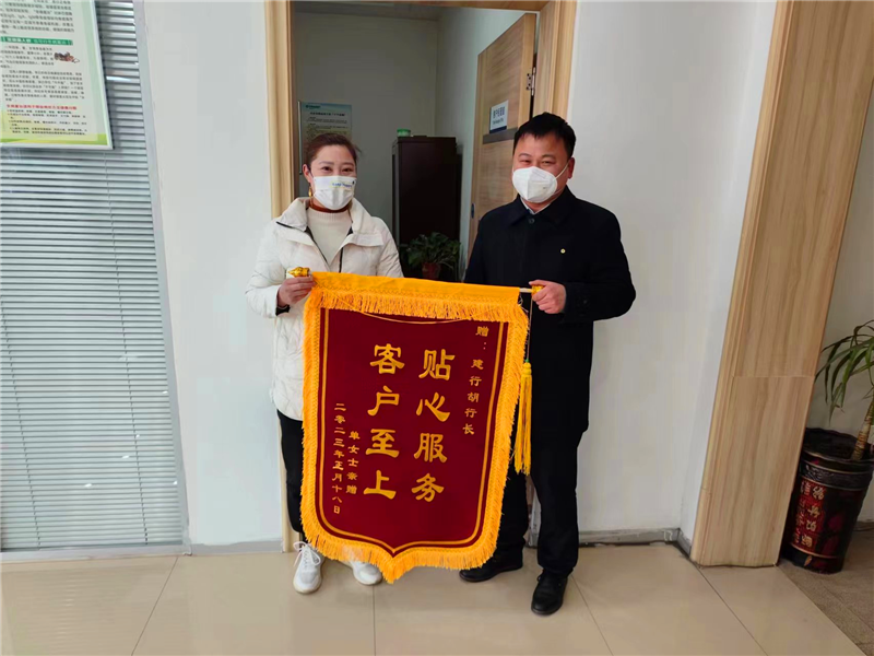 建行項(xiàng)城蓮花大道支行:高效服務(wù)暖人心,真誠(chéng)致謝送錦旗