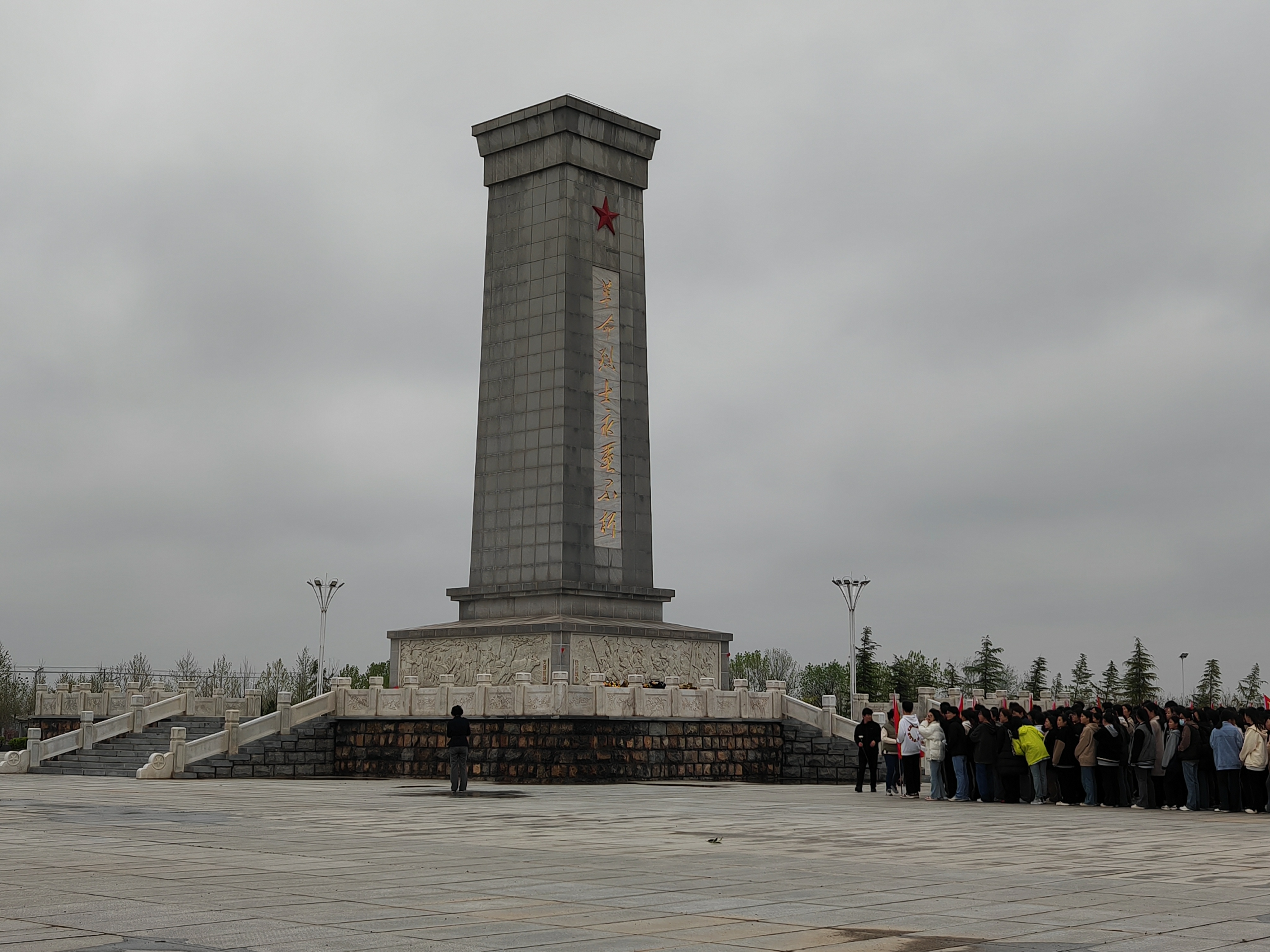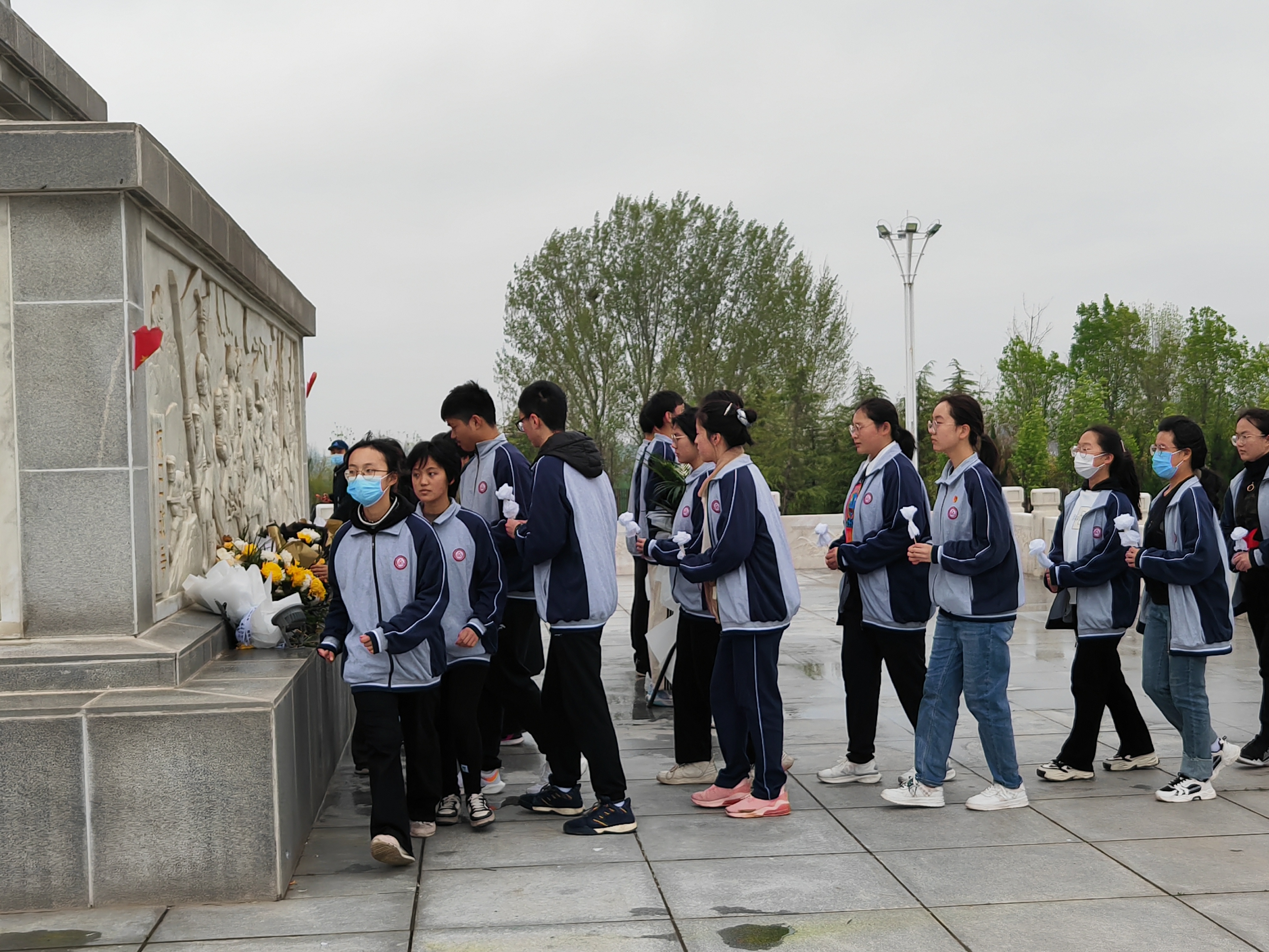 清晨6點(diǎn)30分,料峭冷風(fēng)中,周口一高高二年級1400多名師生在校領(lǐng)導(dǎo)的帶領(lǐng)下,冒著細(xì)雨步行前往十多公里外的周口市烈士陵園開展清明祭掃活動。