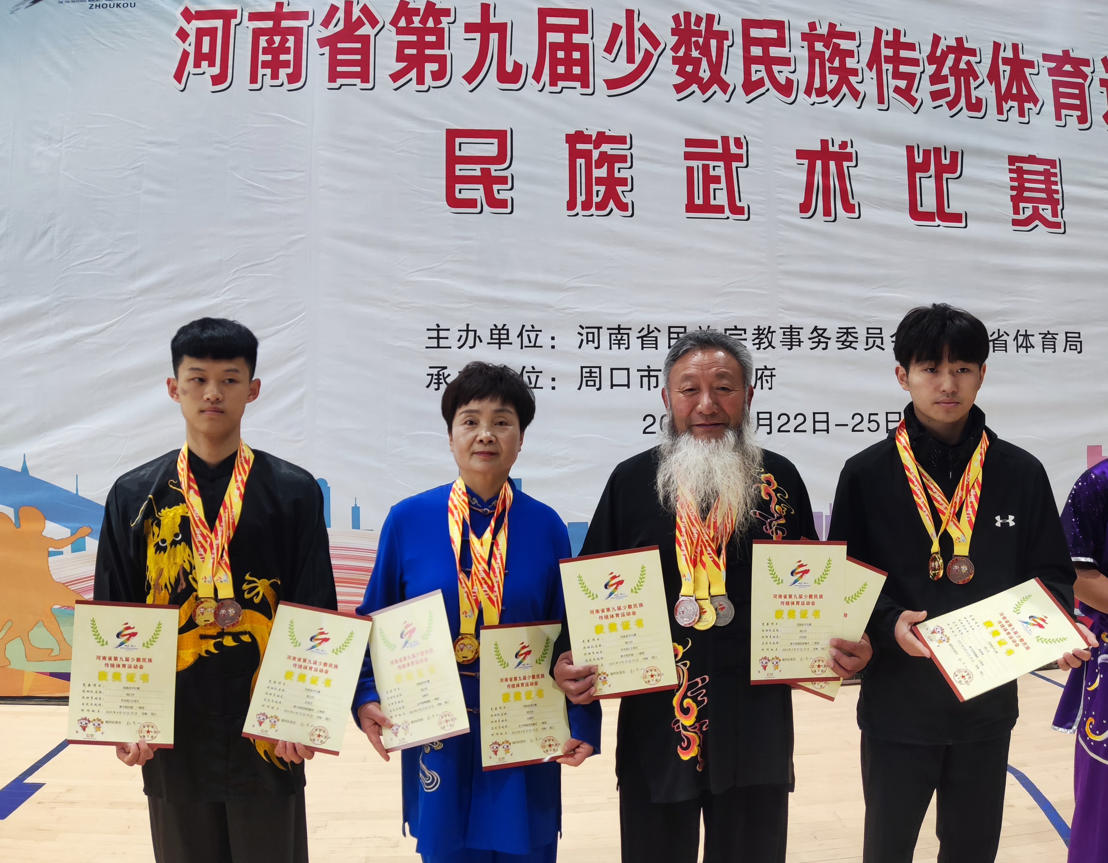 據(jù)悉,在本屆民族運動會民族武術項目中,產(chǎn)生13項金牌,24項銀牌,29項銅牌。周口隊收獲4項金牌、1項銀牌、3項銅牌,取得歷史最好成績。其中,蘇俊瑞獲得男子傳統(tǒng)一類拳術金牌,馬艷平獲得女子傳統(tǒng)四類拳術金牌、女子組單器械金牌,許東陽、王詩文獲得男子組對練金牌。許東陽還獲得男子傳統(tǒng)四類拳術銀牌、男子組單器械銅牌。王詩文獲得男子其他類拳術銅牌。蘇俊瑞獲男子組單器械銅牌。②2