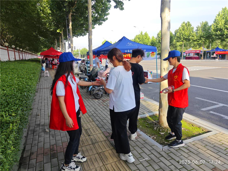 6月7日上午,一年一度的高考如期進(jìn)行。為助力學(xué)子順利考試,奉獻(xiàn)社會愛心,河南省體育彩票管理中心周口分中心聯(lián)合共青團(tuán)周口市委,在周口市文昌中學(xué)考點(diǎn)設(shè)立服務(wù)站點(diǎn)開展愛心助考活動。