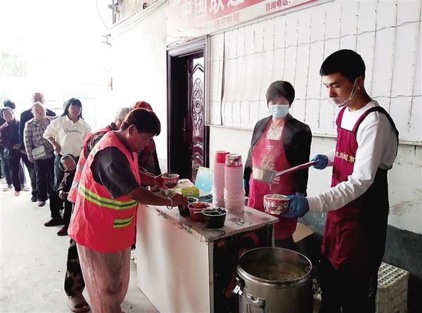 • 10月10日,重陽節(jié)前夕,清晨第一縷陽光灑向大地,錢廣新已經(jīng)忙碌起來,在他和廚師的精心準(zhǔn)備下,一鍋鍋熱氣騰騰、香氣四溢的綠豆面條端了出來。錢廣新一邊熱情地招呼老人排隊,一邊動手盛飯,微笑掛在嘴角,快樂寫在臉上。
